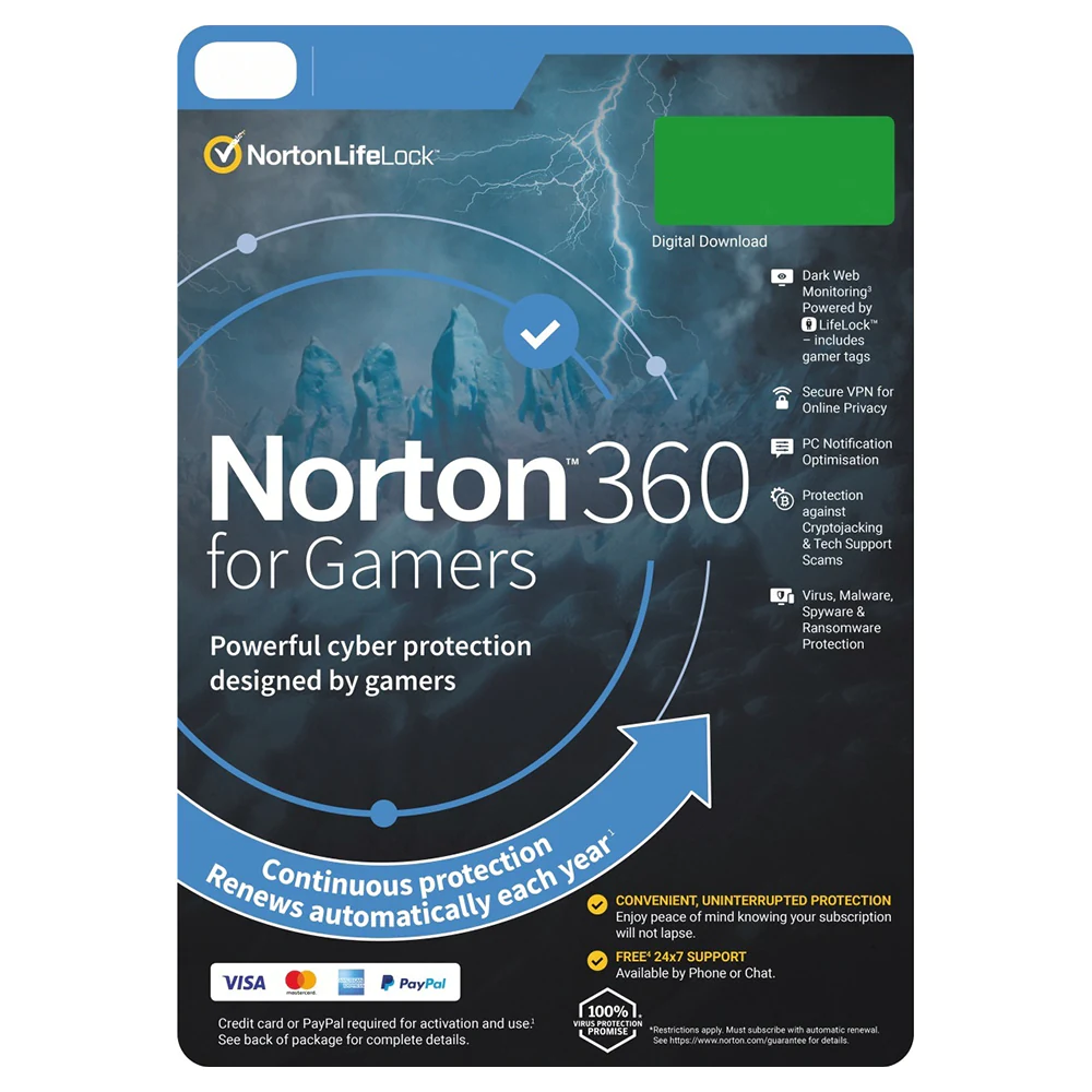 Norton 360 for Gamers has been fantastic for protecting my gaming setup. The key arrived fast, and installation was simple. The cloud storage and real-time protection are great features.